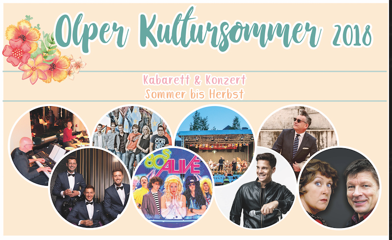 Richtig sommerlich soll es dann im August zugehen: Die Olper, Ölper und Büterlinge treffen sich wieder „Donnerstags auf dem Marktplatz“. Die Open-Air Konzerte werden in diesem Jahr am 2. August von dem Trio „Die 3 Liköre“ eröffnet. Die drei Sänger aus Deutschland, Österreich und Schweden verzaubern den Marktplatz mit einer großen Portion Humor und Charme und „Broadway-Feeling“. Von Neuinterpretationen Kölscher Musik bis hin zu Swing-Klassikern wie „New York, New York“ , „Fly Me To The Moon“ oder „My Way“ – es wird eine energiegeladene Show, die gute Laune bringt! Rockiger geht es in der folgenden Woche mit der 80er-Jahre-Show „80’s Alive“ zu: Vielseitig, bunt und extrem, so war die Musik der 1980er Jahre.