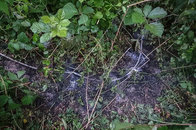 Sandra Dolas0Abgerissene Hochspannungsleitung fällt auf Waldboden
