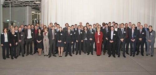 42 weitere Absolventinnen und Absolventen freuten sich über den Master-Abschluss „Master of Business Administration“. Festredner des Abends war der ehemaliger Zehnkämpfer Frank Busemann. „Der Mehrkampf“, so Busemann, „ ist nicht nur eine Sportart, sondern ein gutes Bild für das Leben an sich: Es gibt Hürden, Messlatten, Siege, Niederlagen und den ständigen Kampf gegen den inneren Schweinehund“. Mit interessanten Erfahrungen aus seiner turbulenten Karriere und vielen amüsanten Parallelen zwischen Leistungssport und Berufsalltag zeigte Busemann auf, wie und vor allem warum man Aufgaben angehen sollte, denen man aus Gründen der Bequemlichkeit oder der Angst vor dem Scheitern lieber aus dem Weg gehen würde. Foto: Freuten sich über den verdienten Studienabschluss: Die Absolventen der Verbundstudiengänge Technische Betriebswirtschaft mit ihren Dozenten.