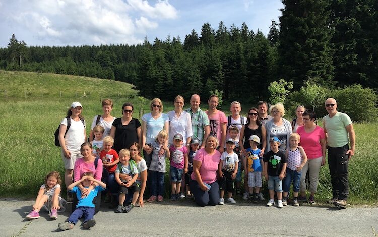 Die gelbe Gruppe des DRK Familienzentrums Winterberg machte zu ihrem Gruppenfest eine "Wichtelwanderung" in den Buchenwald am Minenplatz mit dem Waldpädagogen und Forstwirten Christoph und Berni Leber.