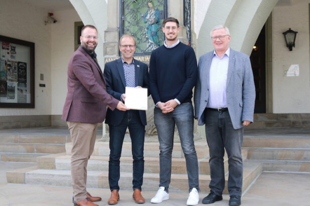 Einen weiteren zertifizierten Nachweis für die gelungene Strategie konnten jetzt Bürgermeister Dr. Bartsch und Stadtkämmerer Wolfgang Pack von Hendrik Wiersch, KYOCERA Document Solutions Deutschland GmbH, und Dominik Peck, Gebietsverkaufsleiter der Fa. Münstermann Bürosysteme, entgegen nehmen: Die Stadt Brilon hat im Zeitraum vom 01.06.2017 bis 31.12.2018 8,29 Tonnen CO2e im Bereich der Druckausgabe der Standardarbeitsplätze kompensiert. (CO2e=CO2-Äquivalent: Das Äquivalent gibt an, wie viel eine festgelegte Menge eines Treibhausgases, z.B. CO2, Methan oder Lachgas zum Treibhauseffekt beiträgt. Die Vergleichseinheit ist CO2).