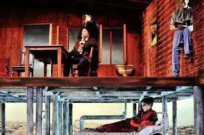 Ulrike Syhas spannende Theateradaption von Steinbecks Erfolgsroman lässt den Zuschauer nicht aus seinem Bann, wühlt ihn auf, lässt ihn lachen, mitleiden und mitfiebern… Alexander Schilling inszenierte die Produktion des EURO-STUDIO Landgraf. Das Bühnenbild und die Kostüme sind von Stephan Mannteuffel.