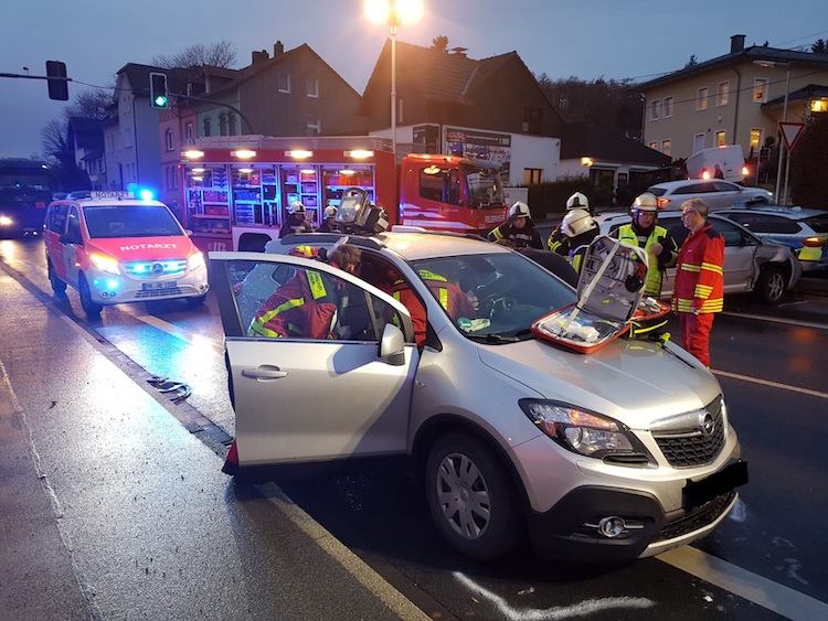 Hemer – Am heutigen morgen (06.12.2019) kam es im Kreuzungsbereich der Mendener Straße/Mesterscheider Weg zu einem Verkehrsunfall, bei dem zwei Personen verletzt wurden. Aufgrund der Verletzungen einer Person, musst diese schonend aus dem Fahrzeug gerettet werden. Hierzu wurde die Fahrertür des PKW durch die Feuerwehr entfernt und die Person konnte dem Rettungsdienst zur weiteren Behandlung und dem Transport übergeben werden. Die Verletzten wurden dem örtlichen Krankenhaus zugeführt. Während der Rettungsmaßnahmen war die Mendener Straße für eine Stunde komplett gesperrt. Die Feuerwehr Hemer war mit der Rüsteinheit der Feuerwache, einem Notarzt und zwei Rettungswagen im Einsatz.