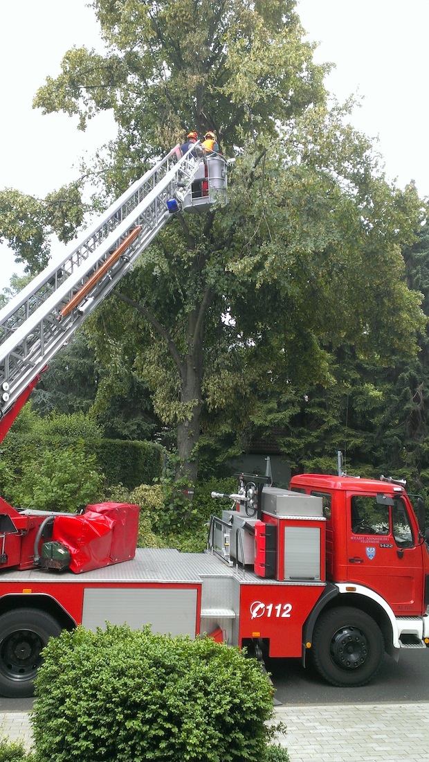 Am Freitag, den 13. Juni wurde die Arnsberger Drehleiter erneut in Marsch gesetzt. Ziel war diesmal die Stadt Mülheim an der Ruhr mit dem Auftrag der Unterstützung der dortigen Berufsfeuerwehr. Die Aufgabe bestand in der Beseitigung von umgestürzten Bäumen und losen Ästen an verschiedenen Schulen. Durch diesen Einsatz kann der Schulbetrieb am kommenden Montag wieder aufgenommen werden. Der Einsatz hat bis in die Abendstunden angedauert, sodass die Feuerwehrleute am späten Abend zurück in Arnsberg waren.