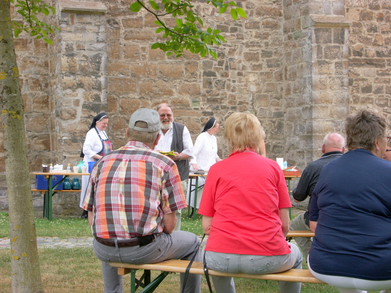 Unterstützt wurden die Schwestern tatkräftig von einigen Gemeindemitgliedern. Zu mehr als humanen Preisen wurden die wartenden Besucher mit diesen leckeren Sachen gestärkt, bevor es dann zu dem hochinteressanten Vortrag von Frau Dr. Heinen über den barocken Hochaltar der Klosterkirche St. Petri in Oelinghausen ging.