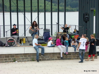 Kelsey Klamath mit ihren Jungs eroberte im nu das Publikum rund um die Seebühne. Eine gekonnte Mischung aus Rock und Pop, Country und Evergreens… vorgetragen mit der Hammer Röhre von Kelsey sprach den Zuschauern voll aus den Herzen. Heino, der Trommler, verstand es mit seinen „Buschtrommeln“ vor allem bei den Kindern- welche außergewöhnlich gut von der Band in das Programm mit einbezogen wurden- seine getrommelten, musikalischen Nachrichten los zu werden.