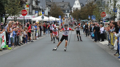 Mit ihren Weiten beim Sprunglauf legen die Nordischen Kombinierer ihre Startplätze beim anschließenden Skirollerlauf in der Winterberger Innenstadt ab 18.30 Uhr fest (Gundersen-Methode). Insgesamt 10 Kilometer sind sie unterwegs, was 6 Runden durch die City entspricht. Für die zahlreichen Fans am Straßenrand ist das perfekt, weil die Stars von morgen mehrfach an ihnen vorbeisausen und sie die jungen Sportler lautstark anfeuern können. Direkt im Anschluss an den Lauf findet auf dem Sparkassen-Vorplatz die Siegerehrung statt.