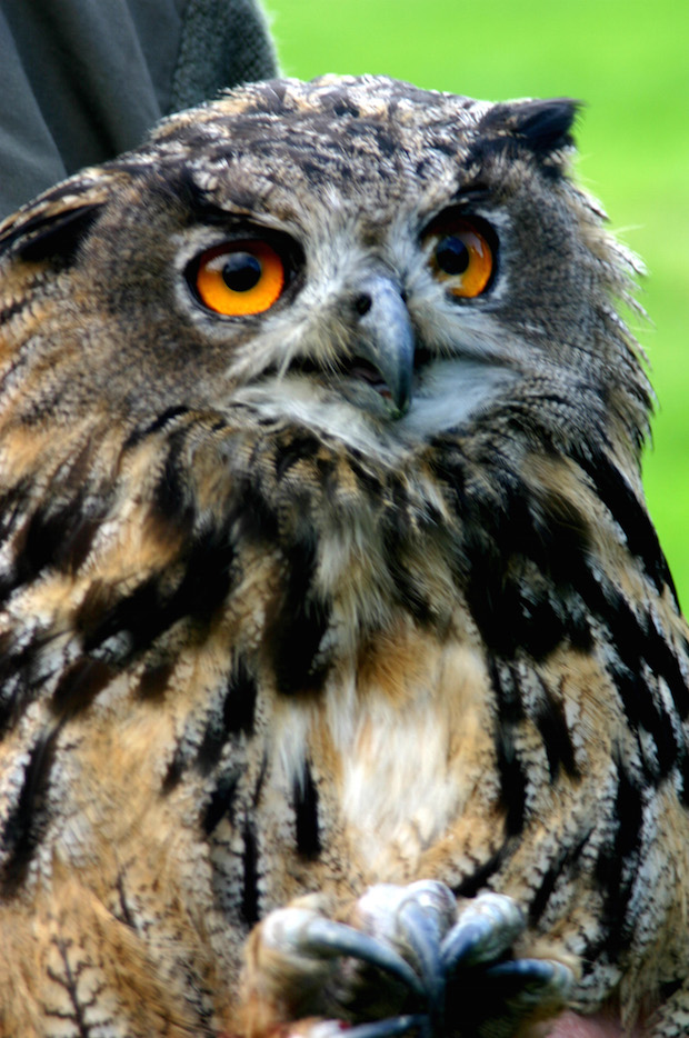 Wilfried Limpinsel machte sich auf den Weg von Essentho nach Velmede. Vor Ort ging er geübt zu Werke und hatte die Situation rasch im Griff: Er warf eine Decke über den entkräfteten Uhu. Danach hielt der Vogel, der mit seinem kräftigen Schnabel nicht ungefährlich ist, ganz still. Mit einer Schere befreite der Tierschützer die Krallen, die durch die Befreiungsversuche des Uhus bereits ganz blutig waren, vorsichtig nach und nach von den Plastikschnüren des Schafzauns.