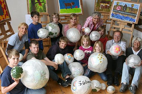 Die Kugeln werden am Südwestfalentag das Tor der Südwestfalen Agentur schmücken. Aus Frischhaltefolie, Klebeband, mit viel Geduld und noch mehr Kreativität wurden die Kugeln hergestellt: Die Kinder schmückten die Perlen mit Bildern, Zeichnungen und Motiven, die sie mit dem Begriff „Heimat“ verbinden. Ob Tiere, Natur oder Familie: An guten Ideen mangelte es den jungen Künstlern keineswegs. Auch der 12-jährige Jannis werkelte eifrig mit und das, obwohl seine Heimat mehr als 2.500 Kilometer entfernt liegt. Er lebt in Athen, besucht derzeit jedoch seine Großeltern in Schmallenberg und war mit Begeisterung beim Perlen-Basteln dabei.