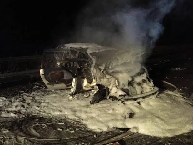 Ein PKW brennt komplett aus