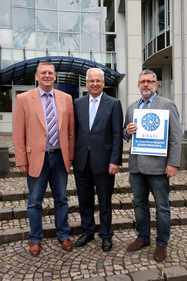 Winterberg – Das St. Franziskus-Hospital in Winterberg hat das MRSA-Qualitätssiegel des internationalen Projektes „EurSafety Health-Net“ erhalten. Landrat Dr. Karl Schneider überreichte das Qualitätssiegel kürzlich im Kreishaus Meschede. Das Siegel bescheinigt dem Krankenhaus einen systematischen und nachhaltigen Patientenschutz vor sogenannten multiresistenten Krankheitserregern (MRE) wie z.B. MRSA.
