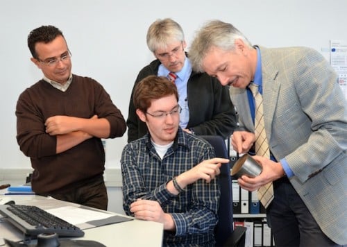 Sind mit dem Resultat der Bachelorarbeit sehr zufriedern: (v.l.n.r) Dr. Aomar Khibit, Dr. Bernd Maurer. Lutz Philipp Lange und Prof. Dr. Matthias Gruber