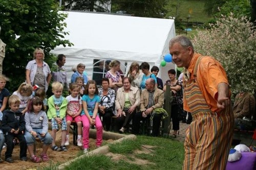 Anders Orth vom Kindertheater „lilalindwurm“ begeisterte gleich zu Beginn mit seinem Kinderlieder-Mitmach-Theaterstück „Monsterquatsch und Wackelzähne“. Große und kleine Gäste ließen sich mitreißen und tanzten, klatschten und sangen die witzigen Lieder mit.