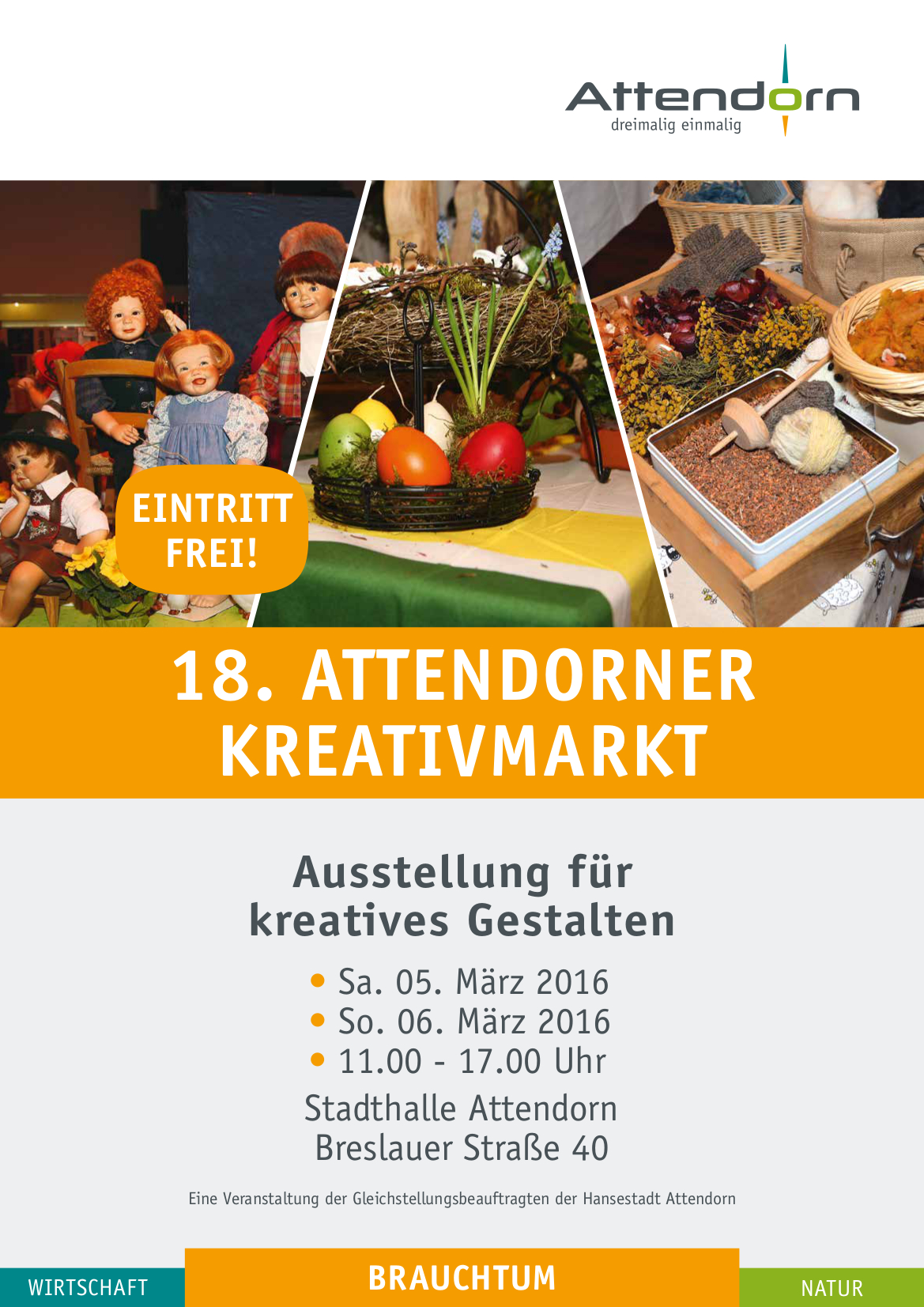 Attendorn – Der Kreativmarkt in der Attendorner Stadthalle hat längst Tradition. Unter dem Titel „Ausstellung für kreatives Gestalten“ präsentieren am 5. und 6. März 2016 bereits zum 18. Mal Freizeit- und Hobbykünstlerinnen ihre qualitativ hochwertigen Arbeiten und bieten sie zum Verkauf an.