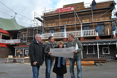 Jürgen Voss, Oliver Bludau, Monika Löcken und Harald Heufer präsentieren in Kooperation Umbaumaßnahmen.