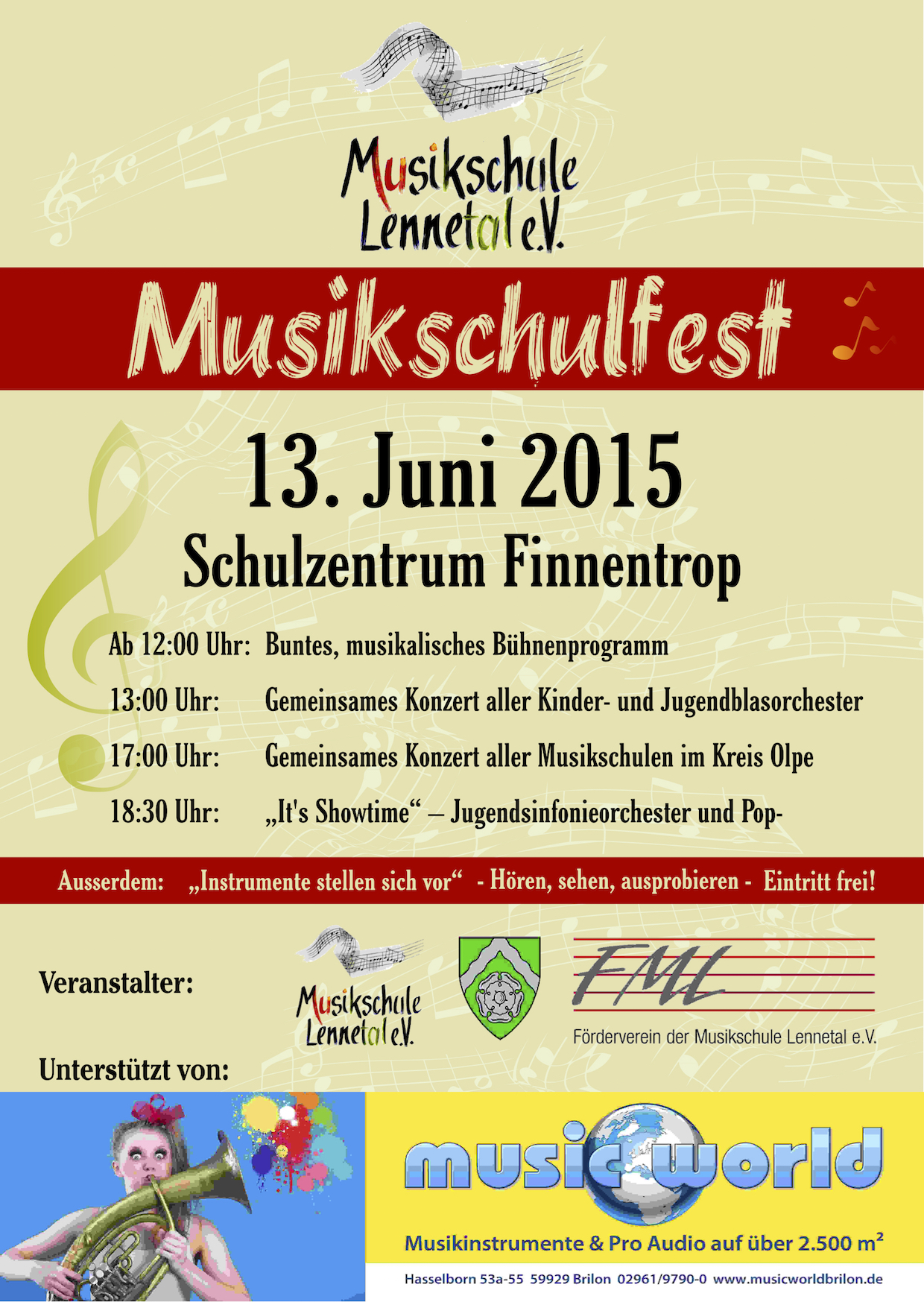 Kreis Olpe/Märkischer Kreis – Große Ereignisse werfen in Finnentrop ihre Schatten voraus: Die Musikschule Lennetal – das ist die kommunal getragene Musikschule der Städte Altena, Neuenrade, Plettenberg, Werdohl und der Gemeinde Finnentrop – gastiert am 13. Juni 2015 mit ihrem großen Musikschulfest im Schulzentrum Finnentrop.