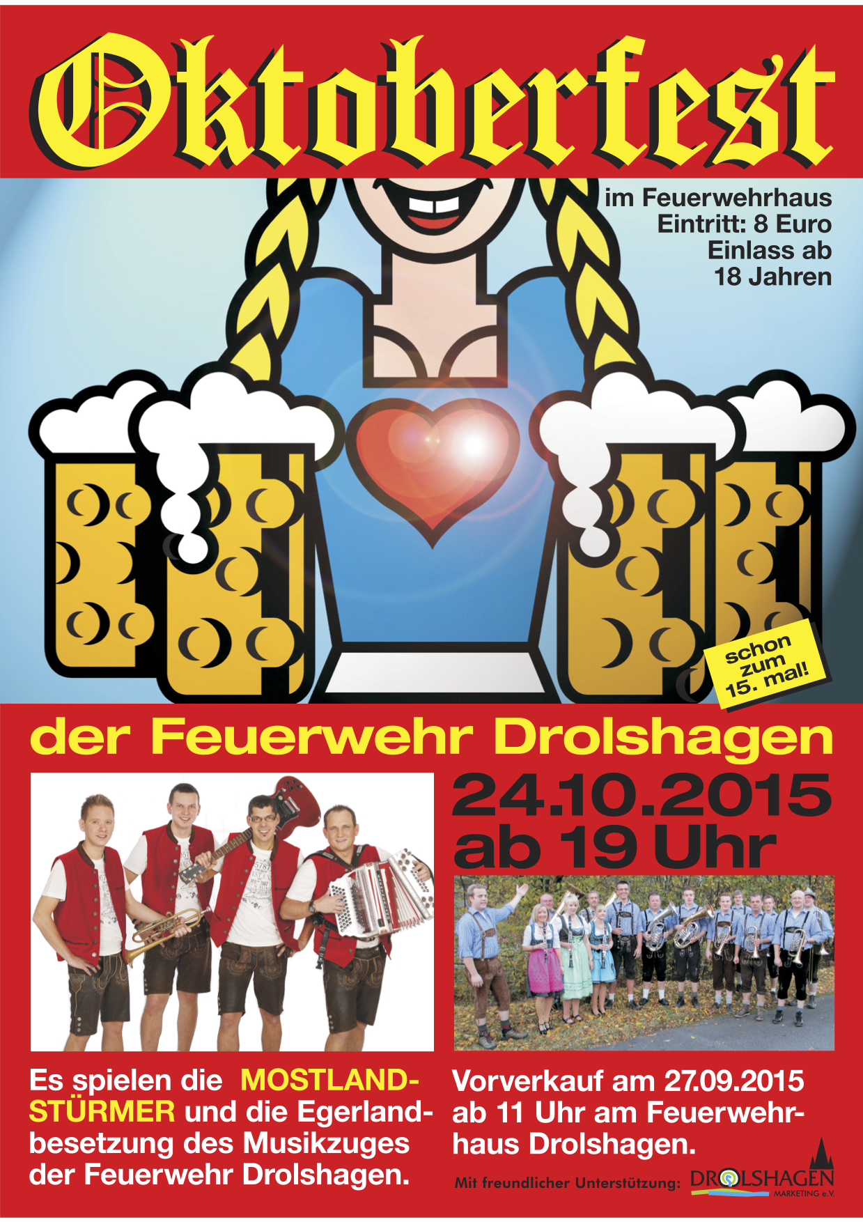 Drolshagen – Am 24. Oktober 2015 ist es endlich wieder so weit. Dann nämlich steht das 15. Drolshagener Oktoberfest an – eine zünftige Gaudi für Jung und Alt!