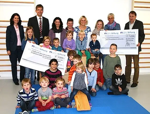 Auch für den Förderverein des katholischen Kindergarten Kirchhundem wird nun bald ein großer Traum in Erfüllung gehen können: Die Anschaffung einer Matsch-Anlage für den Außenbereich soll die Sinneswahrnehmungen Fühlen und Greifen fördern. An einer Matsch-Anlage lernen die Kinder zu teilen und werden durch ein gemeinsames Ziel zusammengeführt. Oft entstehen spontane Spielsituationen, bei denen alle Kinder gefordert sind. Sie müssen etwa schnell ihre Schüppe holen, wenn zum Beispiel ein Staudamm zu brechen droht. Der muss dann gemeinsam schnell repariert werden. „Wasser ist für Kinder immer ein Vergnügen: sie ‚kochen‘, sie matschen, sie bauen und spritzen. Ganz von selbst machen sie taktile Erfahrungen. Das Matschen mit Wasser und Sand ist wichtig für die Förderung der sensorischen Entwicklung eines Kindes“, erläutert Kindergartenleiterein Manuela Lahme. Bankvorstand Michael Griese: “Die Volksbank Bigge-Lenne versteht ihre Stiftung nicht als Ersatz, sondern als sinnvolle Ergänzung für ihr eigenes gesellschaftliches Wirken. Die Förderung der Kinder und der Jugend liegt uns dabei ganz besonders am Herzen.“