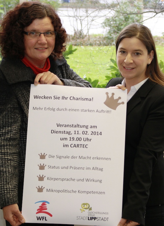 „Königinnen-Charisma“ heißt daher der Titel des Seminarabends mit Edith Börner am Dienstag, 11. Februar 2014 um 19.00 Uhr im CARTEC, zu dem die Wirtschaftsförderung Lippstadt GmbH und die Gleichstellungsstelle der Stadt Lippstadt gemeinsam einladen.
