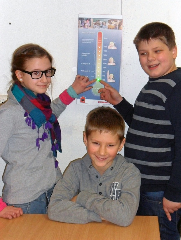Besonderes Augenmerk galt im ersten Projektjahr dem richtigen Lüften mit dem Ziel, den Konflikt zwischen Lüftungs-Wärmeverlusten und der notwenigen Frischluftversorgung zur Sicherstellung einer guten Raumluftqualität sinnvoll zu lösen. In einer Studie der Universität Bremen wurde festgestellt, dass ein erhöhter CO2-Gehalt der Luft im Klassenzimmer zu Ermüdung und in der Folge zu Konzentrationsschwächen führt. Und so wurde auch während des Erfahrungsaustausches im Rondell der Graf-Bernhard-Realschule der CO2 -Gehalt der Luft gemessen und gelüftet, sobald die Anzeige mehr als 1500 ppm CO2 anzeigte.