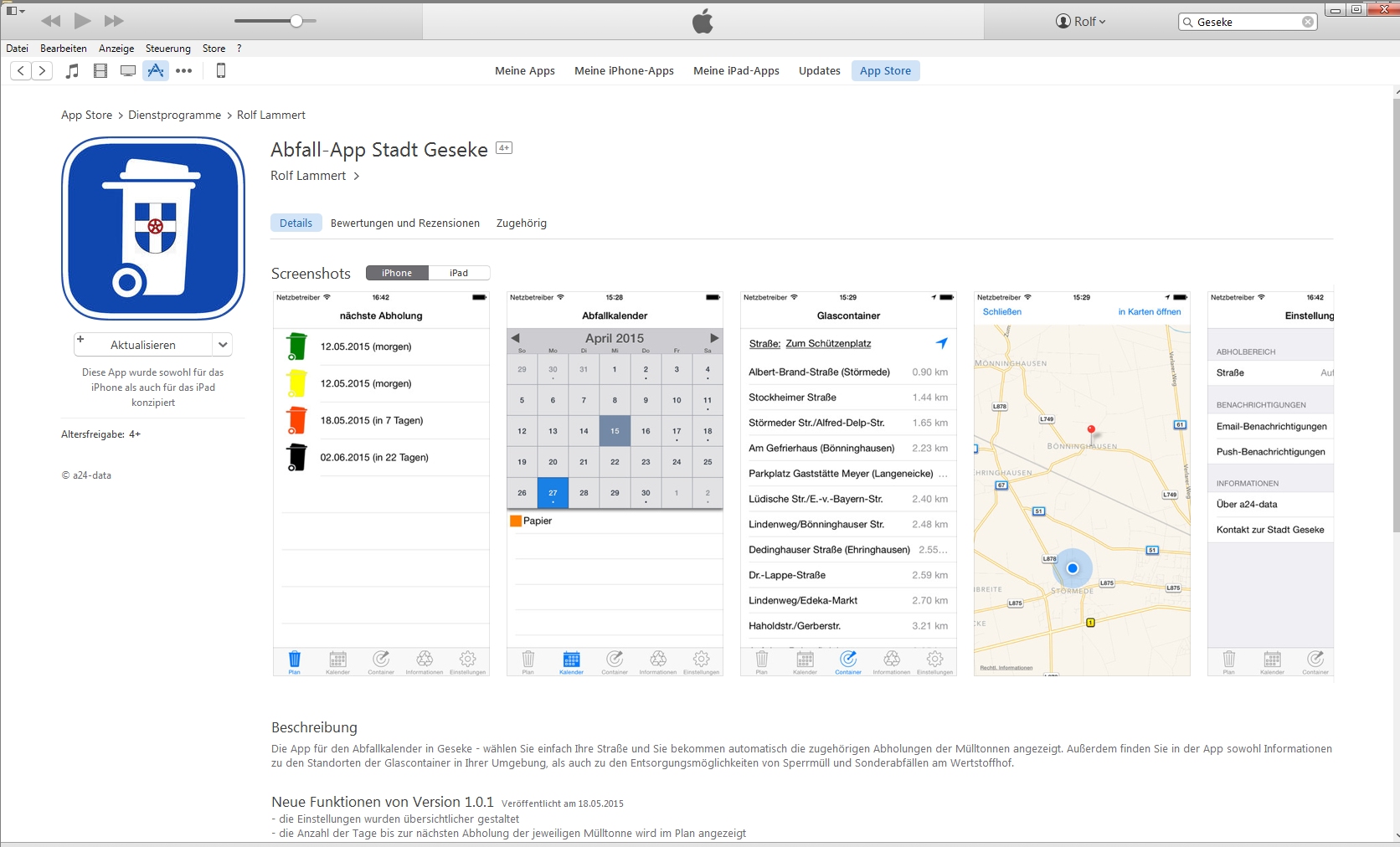 Geseke – Wann wird die grüne Mülltonne abgeholt? Wo befindet sich der nächstgelegene Glascontainer? – Auf diese und viele weitere Fragen weiß die neue Müllabfuhr-App Antworten. Gemeinsam mit dem heimischen Unternehmen „A24data“ bietet die Stadt Geseke künftig einen kostenlosen Abfallkalender für Smartphone-Nutzer an.