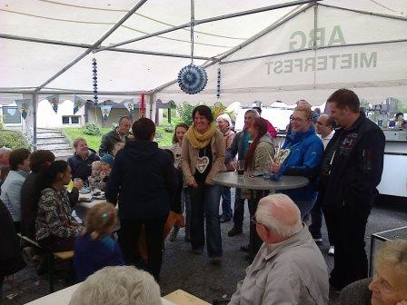 Nach der Wohntreff-Eröffnung ging es zum „Oktoberfest“ im Wendehammerbereich der Humboldtstraße. Hier ließen sich alle auch durch den ab 17 Uhr einsetzenden Regen nicht die gute bayerische Stimmung vermiesen. Die Kinder hatten ihr ABG-Glücksrad. Die Erwachsenen mussten den traditionellen Eröffnungsspruch „O‘ zapft is!“ kennen, um in die Lostrommel zu kommen. Den Eröffnungsspruch kannten natürlich alle, und so gab es wieder Gewinner von zwei Eintrittskarten für den Erlebnisaufzug zur Burg Altena mit Buttons von Burghard (3. Preis), einem Gutschein der Metzgerei John, Altena (2. Preis) und einer Monatsnettokaltmiete (1. Preis). An dieser Stelle noch einmal allen Gewinnerinnen und Gewinnern herzlichen Glückwunsch!