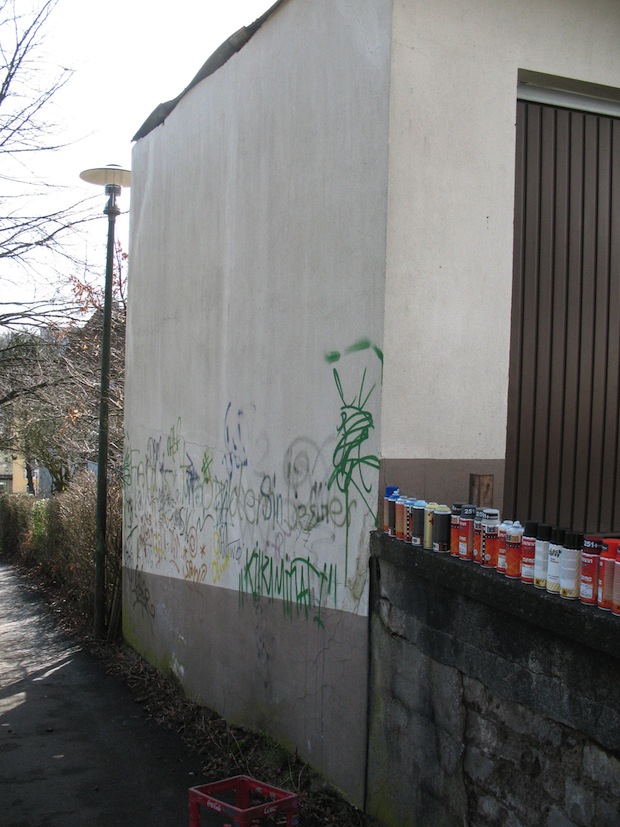 Auf den gut 20 Quadratmetern verbrauchte Yves Thomé knappe 40 Sprühdosen aus seinem Privatvorrat und hofft, das auch weitere Hausbesitzer den Mut haben, ihre unansehnlichen oder wild beschmierten Fassaden bemalen zu lassen. Bei freier Motivwahl seitens des Künstlers würden dabei nur die Materialkosten anfallen.