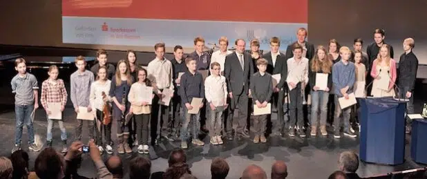 Der Landrat des Märkischen Kreises, Thomas Gemke, ehrte am Sonntag, 1. März, die jungen Musikerinnen und Musiker aus dem Kreisgebiet, die beim Regionalwettbewerb „Jugend musiziert“ im vergangenen Jahr einen ersten Preis errungen und sich damit für den Landeswettbewerb qualifiziert haben. Sie erhielten im Lüdenscheider Kulturhaus Lüdenscheid je eine Urkunde und Freikarten für die Phänomenta. Während der Landrat 37 Nachwuchs-Musiker belohnen konnte, durfte Lüdenscheids Bürgermeister Dieter Dzewas seinerseits 29 erfolgreiche Jugendliche aus Lüdenscheid ehren. Die Auszeichnungen wurden im Rahmen der Veranstaltung „Wir sind Westfalen West – 50 Jahre Musikschule Lüdenscheid“ bekamen die Lüdenscheider Teilnehmer am Regionalwettbewerb „Jugend musiziert“ vom Lüdenscheider Bürgermeister, Dieter Dzewas, ebenfalls eine Urkunde.