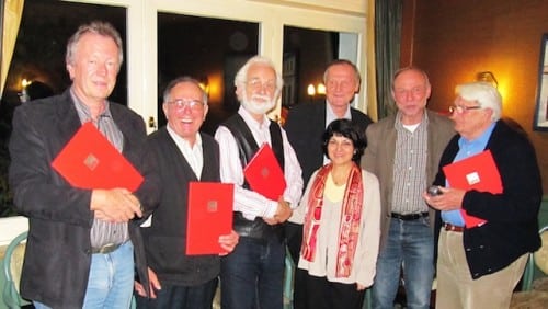 Die neue Vorsitzende Farzaneh Daryani im Kreise der Jubilare und des Laudators Reinhard Schmidt