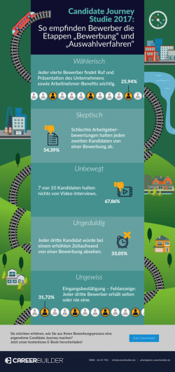 München – CareerBuilder und die Macromedia Hochschule München wollten’s wissen: Ist das, was Recruiting-Experten “Candidate Journey” nennen, eine Vergnügungsreise? Die Studie „Abenteuer Jobsuche” hat die Reise der Bewerber Schritt für Schritt unter die Lupe genommen. Dazu wurden insgesamt 1.465 Kandidaten in Deutschland im Alter von 14-65 Jahren befragt. Der zweite Teil des CareerBuilder E-Books „Die Candidate Journey: So sehen Bewerber heute die Reise zum neuen Job” beschäftigt sich mit Fragen wie: Was macht eine Stellenanzeige attraktiv? Welche anderen Faktoren halten potenzielle Kandidaten von einer Bewerbung ab? Was erwarten Bewerber von der Interaktion mit Personalabteilungen?