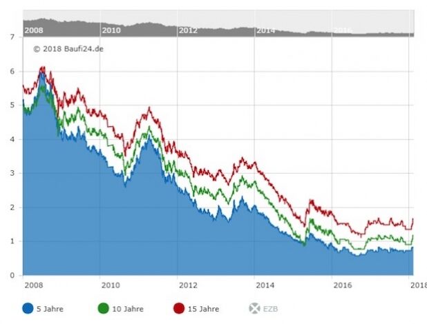 Hamburg – Das Jahr 2017 endete mit Zinsen auf niedrigem Niveau und auch Anfang 2018 bleiben Baufinanzierungen unschlagbar günstig. „Der Zinssatz für Darlehen mit 50 % Beleihung und 15 Jahren…