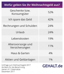 Viele Beschäftigte dürfen sich in der Weihnachtszeit über einen Bonus freuen. Doch wofür geben die Deutschen ihr 13. Gehalt überhaupt aus? In einer Umfrage von Gehalt.de wurden 411 Angestellte zum…
