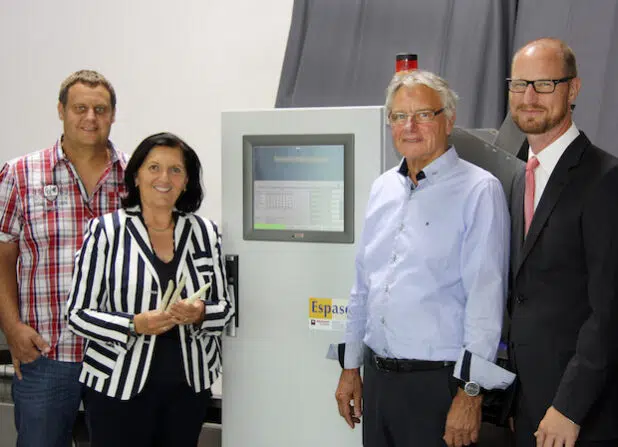 Warum die Espaso-Reihe zu den weltweit gefragtesten Produkten der Firma Neubauer Automation OHG zählt, ließen sich jetzt Landrätin Eva Irrgang und Volker Ruff, Geschäftsführer der Wirtschaftsförderung des Kreises Soest, von den beiden Geschäftsführern des Unternehmens, Hermann (2. v. r.) und Christoph Neubauer (l.), erklären.