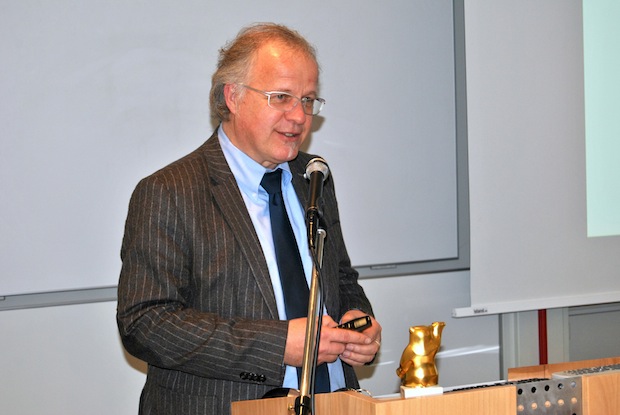 Bevor Udo Hinzpeter, Mitglied der Geschäftsleitung des Kunststoffinstituts, anschaulich beschrieb, wie dies beim Spritzguss erreicht werden kann, wurde es zunächst einmal feierlich. Der goldene Berliner Bär wurde symbolisch noch einmal an das Kunststoffinstitut überreicht und hat somit ab sofort seinen offiziellen Wohnsitz in Lüdenscheid.