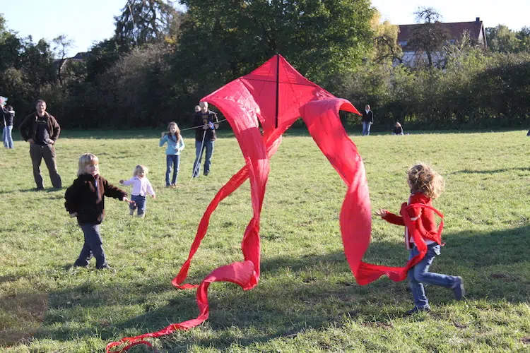 Heute dient das Drachensteigen rein dem Vergnügen und stimmt perfekt auf den Herbst ein. Gespanne aus Raben und Gespenstern erinnern schon ein bisschen an Halloween. Highlight sind die Drachen im Stil des japanischen Drachenbaumeisters EiJi Ohashi: Er hat einen effektiven Flachdrachen entwickelt, den viele Drachenfreunde in aller Welt nachbauen. Die geniale Konstruktion des Diamantdrachens macht möglich, die Kette als Leiter oder Bogen fliegen zu lassen – und das sowohl vorwärts als auch rückwärts.