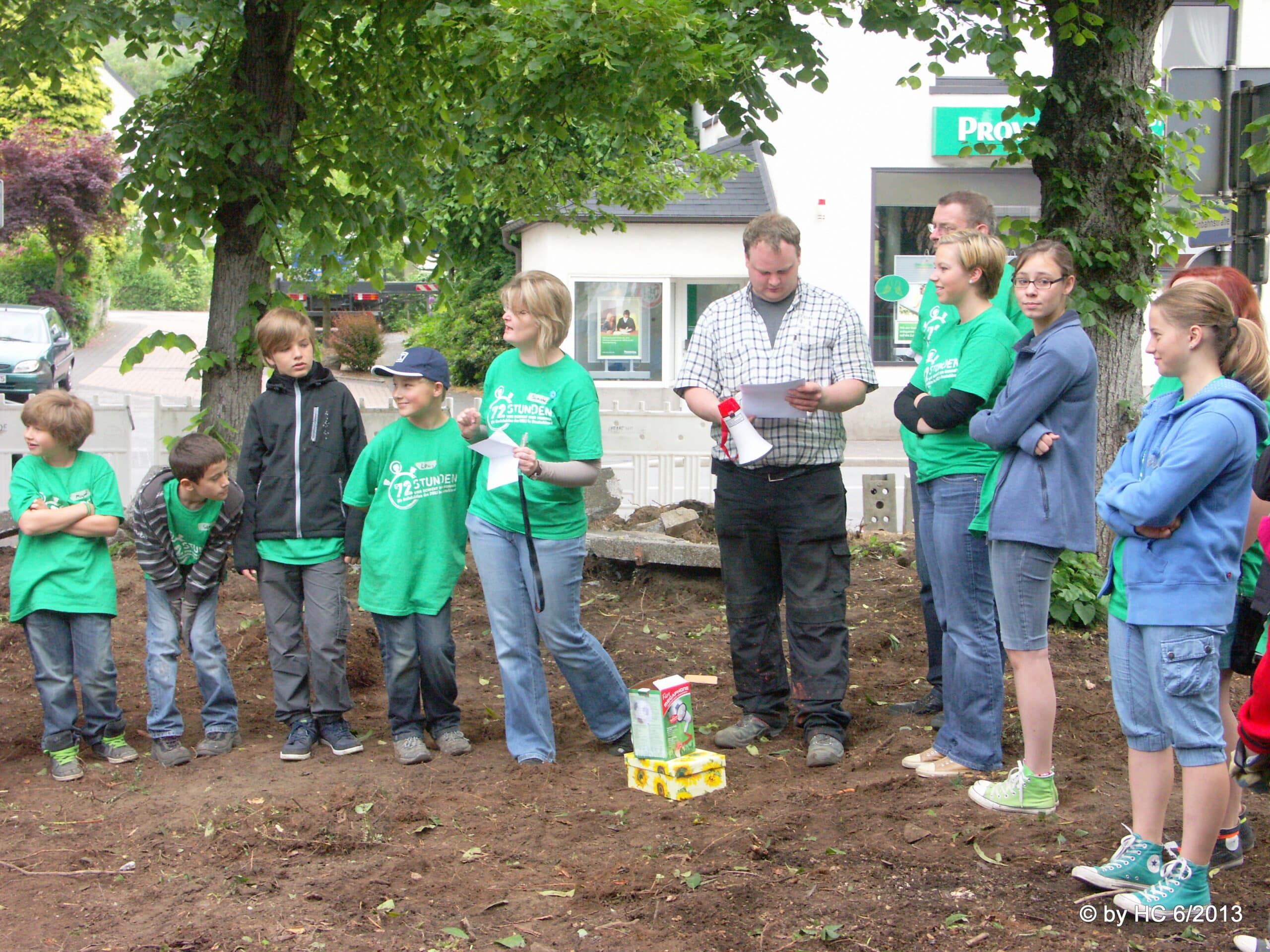 Diese Ansammlung von Mitgliedern der kath. Pfadfinderschaft St. Georg aus Neuenrade- aus eben diesem Pfadfinderstamm rekrutierten sich die jungen Neuenrader Bürger hauptsächlich- war zu einer 72 Stunden Aktion angetreten, um ihre Arbeitskraft bei dem Umbau des Stadtgartens einzubringen. Sie sorgen auch mit ihrer Hände Arbeit da für, dass unsere Kleinsten bald das stadteigene Kinderkarussel nutzen können. Welcher Dank ist schöner, als ein fröhliches Kinderlachen?