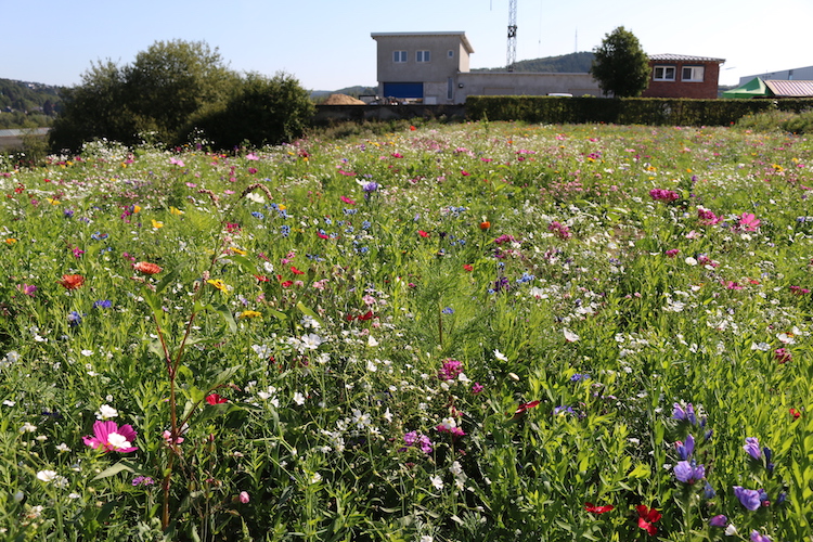 Bunte Blütenpracht so weit das Auge reicht, summende Bienen, tanzende Schmetterlinge: Horst Brederlow hat ganze Arbeit mit seiner Wildblumenwiese geleistet. Nach Feierabend bearbeitete er eine brach liegende Fläche im Neunkirchener Gewerbegebiet Daadenbach. Ein Wasserreservoir für die Feuerwehr ist hier vergraben. „Nachdem der Mutterboden aufgebracht worden war, habe ich Sand in den Boden geharkt, um ihn für die Wildblumenmischung vorzubereiten, die Fläche geglättet und dann den Samen ausgesät“, erklärt der Neunkirchener Unternehmer. Dass das Areal eine Größe von 1500 m2 hat, scheint Brederlow, weder beim Einsäen der Wiese, noch bei deren Mähen mit der Sense vor wenigen Wochen, wirklich beeindruckt zu haben.