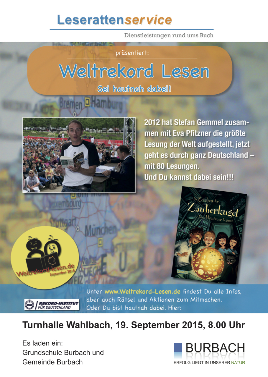 Mit der Aktion, die Bürgermeister Christoph Ewers und die Vorsitzende des Schulausschusses, Nicole Schoeppner, gerne unterstützen, soll bewiesen werden, dass Lesen eine Leidenschaft ist, die ganze Massen fesseln und begeistern kann. Der Autor will im Rahmen des Weltrekordversuchs 80 Veranstaltungsorte in allen Bundesländern in möglichst kurzer Zeit bereisen und damit ein besonderes Literaturevent für Kinder und Jugendliche anbieten.