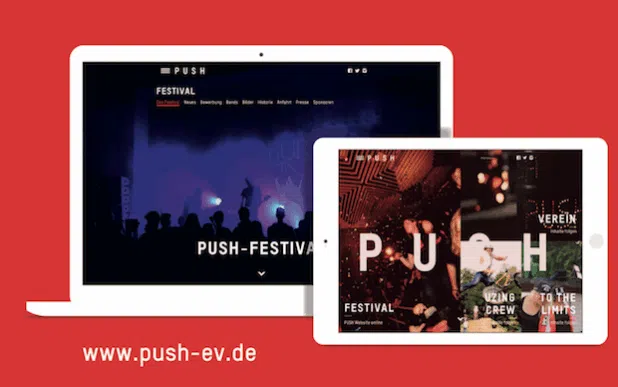 Jenseits der kurzweiligen Social-Media-Seiten, versprechen die Seiten des PUSH e.V. ein professionelles Design, welches die vielfältigen Aktivitäten des Vereins präsentiert. Die „Macher“ der Seite möchte die junge Zielgruppe gezielt mit modernen Tools und Verknüpfungen zu Facebook, Instagram, und Twitter ansprechen.