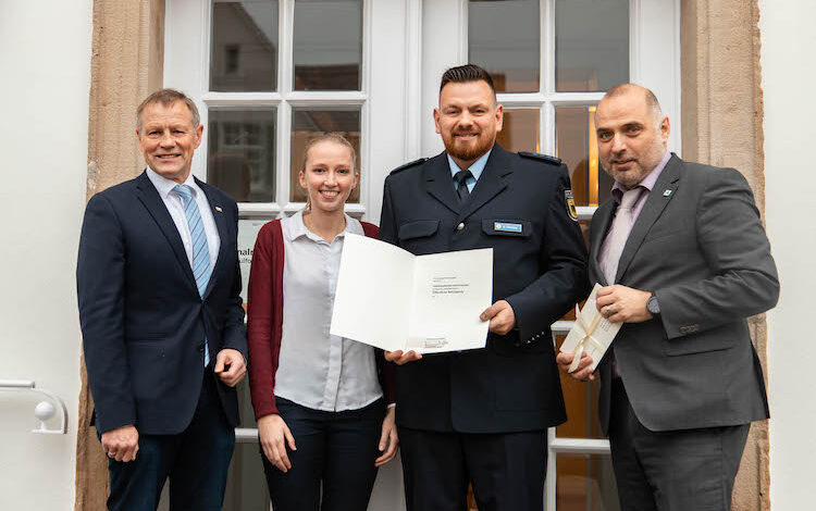 Arnsberg – Eine Öffentliche Belobigung des Landes Nordrhein-Westfalen erhielt gestern (9.1.) Polizeihauptmeister Andre Franzisko aus Arnsberg. Die Urkunde übergab Regierungsvizepräsident Volker Milk im Namen des Ministerpräsidenten Armin Laschet und dankte…