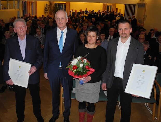 Hemer - Für ihr ehrenamtliches Engagement wurden am Dienstagabend (15. Dezember) Angelika Dreißigacker (Mitte) und Andreas Joswig (rechts) mit der Ehrennadel der Stadt Hemer ausgezeichnet. Ehe Hemers erster stellvertretender Bürgermeister…