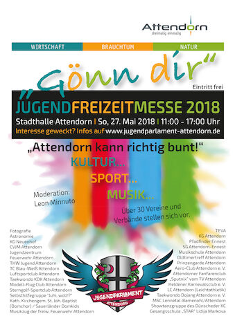 Derzeit laufen die Vorbereitungen für die große Freizeitmesse, die das Jugendparlament am Sonntag, 27. Mai 2018, in der Stadthalle Attendorn durchführt, auf Hochtouren.