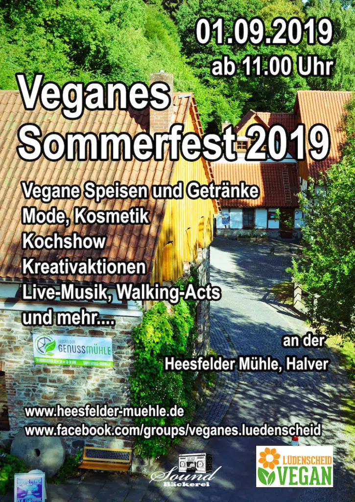 Nach den erfolgreichen Veranstaltungen der letzten beiden Jahre, lädt die Interessensgemeinschaft „Lüdenscheid vegan“ in Kooperation mit der Sound Bäckerei zum dritten mal zum veganen Sommerfest für die ganze Familie an…