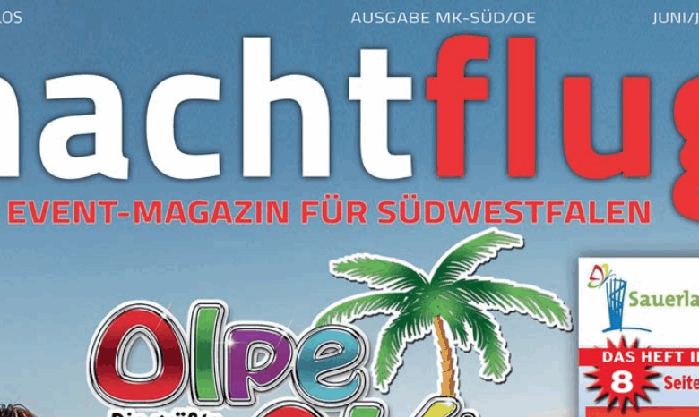 Lüdenscheid / Südwestfalen - In der kommenden Woche wird das neue NACHTFLUG MAGAZIN in ganz Südwestfalen verteilt. Heute schon können Sie das ePaper hier bei den SüWeNa kostenfrei runterladen.