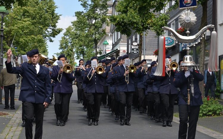 Zum vierten Mal schon spielt der Musikzug der Freiwilligen Feuerwehr Olpe zu seiner "Olper Marschrevue" auf, die wieder vier Wochen vor dem Schützenfest in der musikbegeisterten Stadt aufgeführt wird.