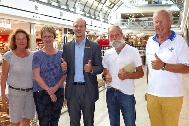 Siegen - Strahlende Gesichter bei der Spendenübergabe der Erlöse des 2. Bücherflohmarkts in der City-Galerie in Siegen. 4.800 Euro konnten an die aktiven Mithelfer der Aktion übergeben werden. Center Manager…