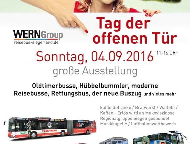 Siegen - Am Sonntag, den 4. September veranstaltet die WERNGroup von 11 bis 16 Uhr einen Tag der offenen Tür auf dem Betriebshof Krombach. „Wir möchten den Menschen in der…