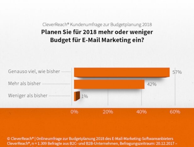 Rastede – Vier von zehn Unternehmen (42 Prozent) erhöhen 2018 ihre E-Mail-Marketing-Budgets. Konkret bedeutet das, knapp 53 Prozent der Befragten möchten in die Gestaltung der E-Mails und 43 Prozent in…