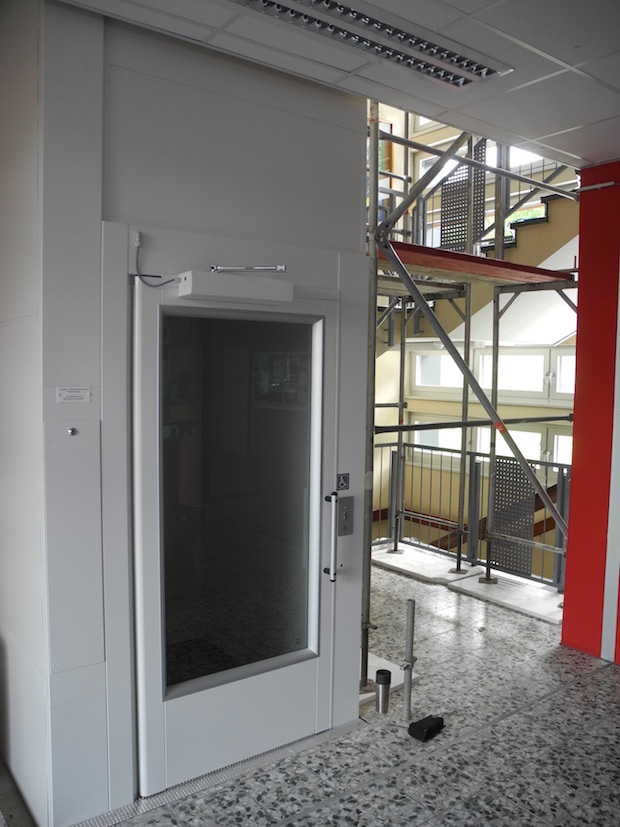 Burbach – Pünktlich zum Start des neuen Schuljahres 2015/2016 wurden in den Sommerferien diverse Modernisierungsmaßnahmen in der Grundschule Burbach und der Gemeinschaftsschule abgeschlossen. Im Juni hatte der Rat der Gemeinde Burbach den Einbau eines Personenaufzuges im Gebäudekomplex 1 der Gemeinschaftsschule Burbach beschlossen. In den Sommerferien wurde der Aufzug montiert. „Der Aufzug soll Schülerinnen und Schülern mit körperlichen Handicaps ermöglichen, in die oberen Stockwerke der Schule zu gelangen“, so Bürgermeister Christoph Ewers, der darin auch einen weiteren Baustein zur Inklusionsförderung sieht. In den Einbau hat die Gemeinde Burbach rund 46.000 Euro investiert. Im gleichen Zuge wurden auch die Seitenelemente der Treppengeländer erneuert: Das bisherige Holzgeländer wurde durch ein Lochblechkonstrukt ersetzt.