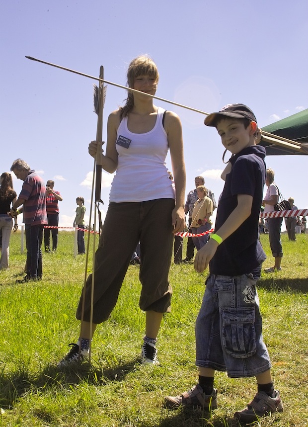 Der Tag steht ganz im Zeichen von ausprobieren und selbst machen. Nach einer kurzen Einführung in die Steinzeit geht es richtig los. Jeder stellt sich ein Steinzeitmesser mit einer Klinge aus Feuerstein her. Bei der Jagd auf wilde Tiere kann man sein Geschick mit der Speerschleuder unter Beweis stellen. Für das Jagdglück wird als Talisman ein Amulett aus einer Knochenscheibe gefertigt. Damit die erlegte Beute auch gegessen werden kann, muss auf steinzeitliche Art das Feuer entzündet werden.